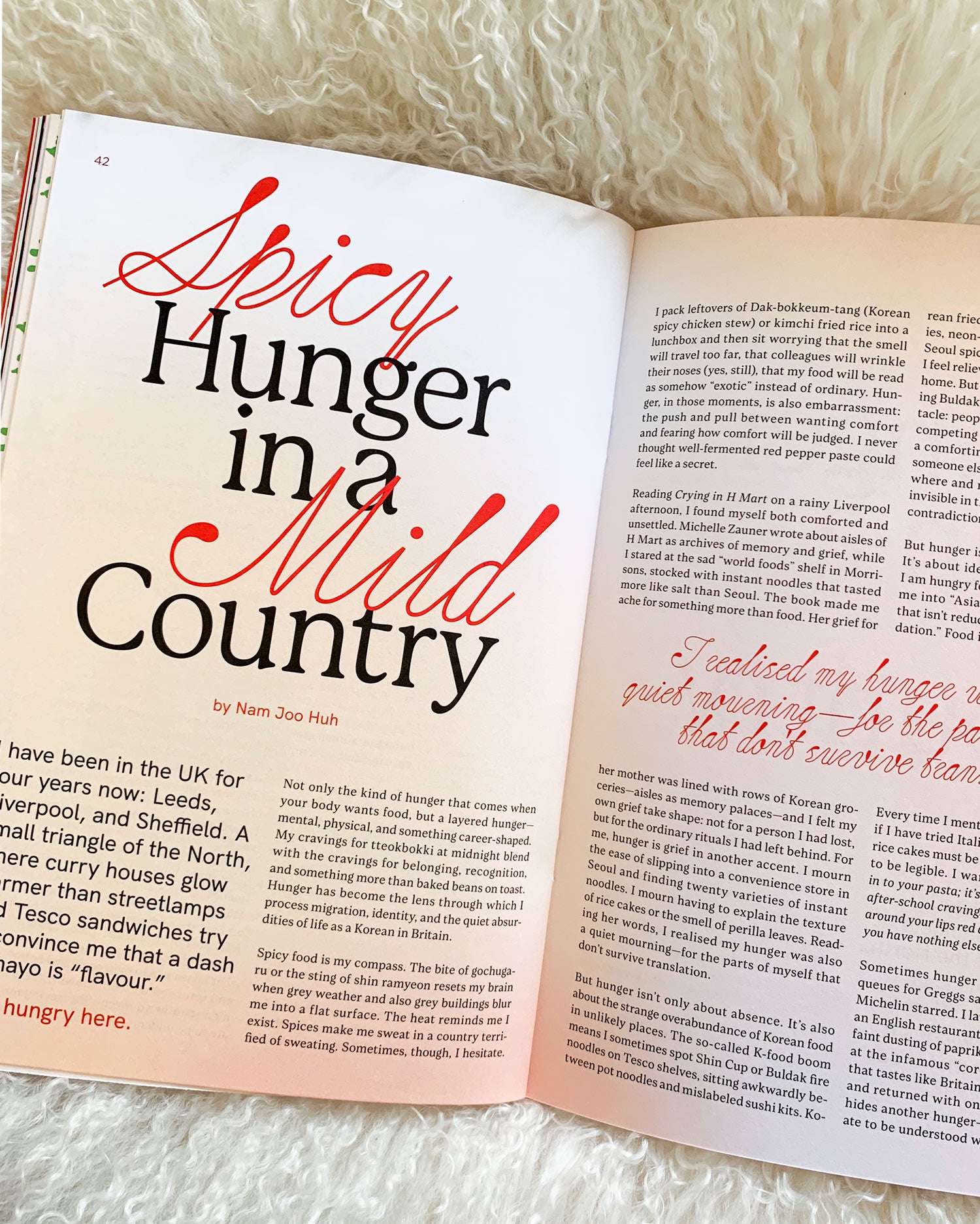 This issue takes us across the world—from Canada to Pakistan; from Ukraine to Korea. And in every corner of the earth these stories came from, something felt universal: food is not just survival, it is resilience; it is home; it is the ties that bind. Food is also political. Those who have it, and those who don’t. How we eat it, and what is available around us. Food touches all parts of our lives.